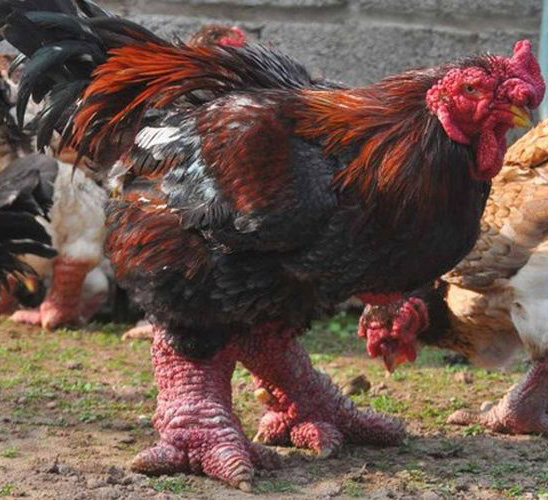 Их называют слоновьими курами или вьетнамскими. Это удивительные птицы, достаточно редкие и дорогие. Выведена как бойцовая порода, чисто спортивного назначения. Разводят только во вьетнамской глубинке и за пределами страны почти не встречается. Хотя можно было и популяризировать слоновьих кур. Выглядят они не просто оригинально, но и устрашающе. Могли бы заполнить собственную нишу декоративного искусства — в сюрреалистическом ключе. Но шутки в сторону: этой породе более шестисот лет, она долго приобретала самые лучшие качества для петушиных боёв, которыми испокон века славилась именно деревня Донг Тао. Наверное, нужно добавить, что Га — это курица, и название будет полностью расшифровано. В пищу идут в основном только мощные ноги, которые в стране считаются деликатесом. Сам петушок весит до семи килограммов, а его лапа в обхвате толщиной в человеческое запястье и чешуя на ней как у дракона. Точно — слон среди остальных пород. И стоимость под стать: за яйцо курицы Га Донг Тао нужно отдать как минимум пятьсот долларов.
