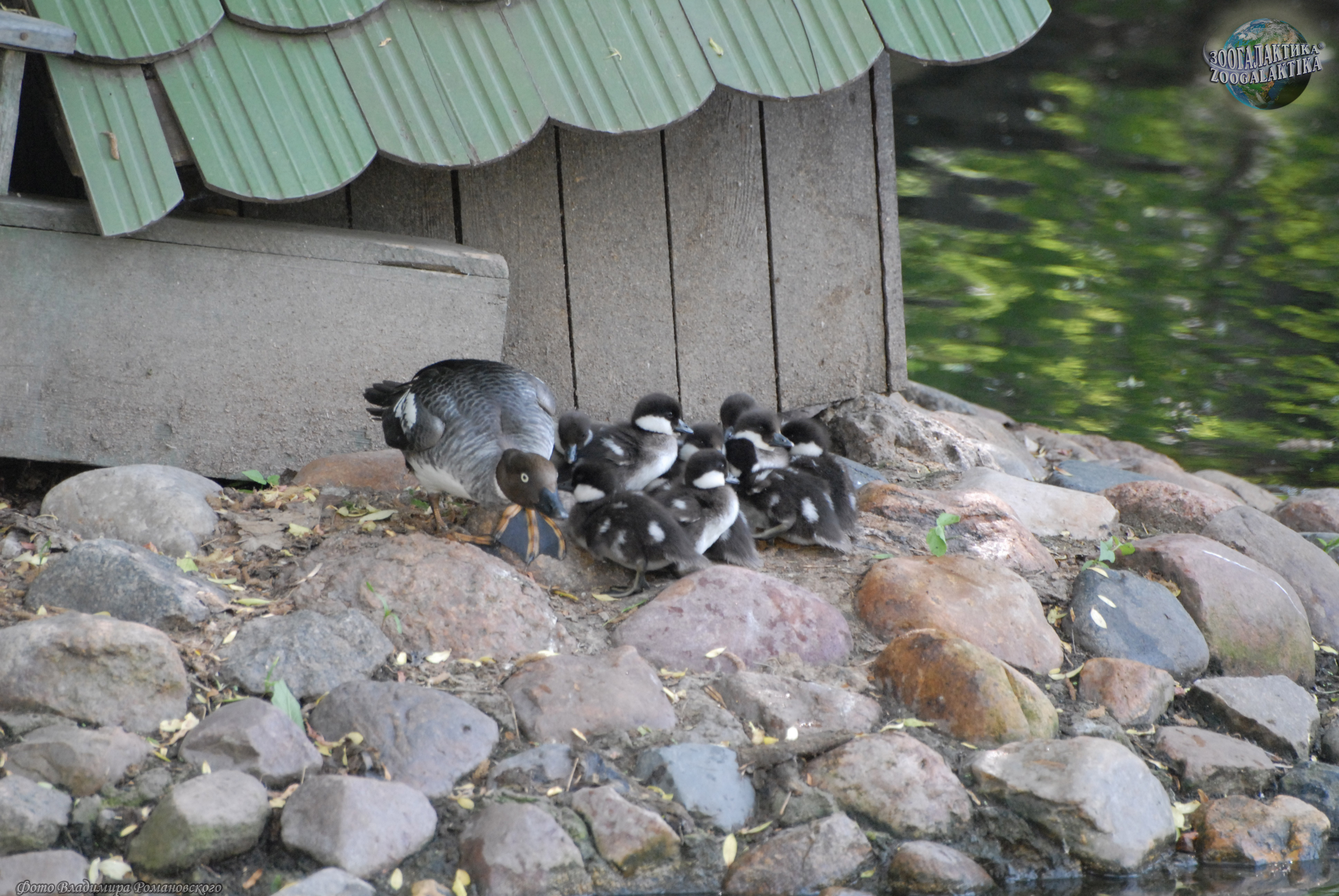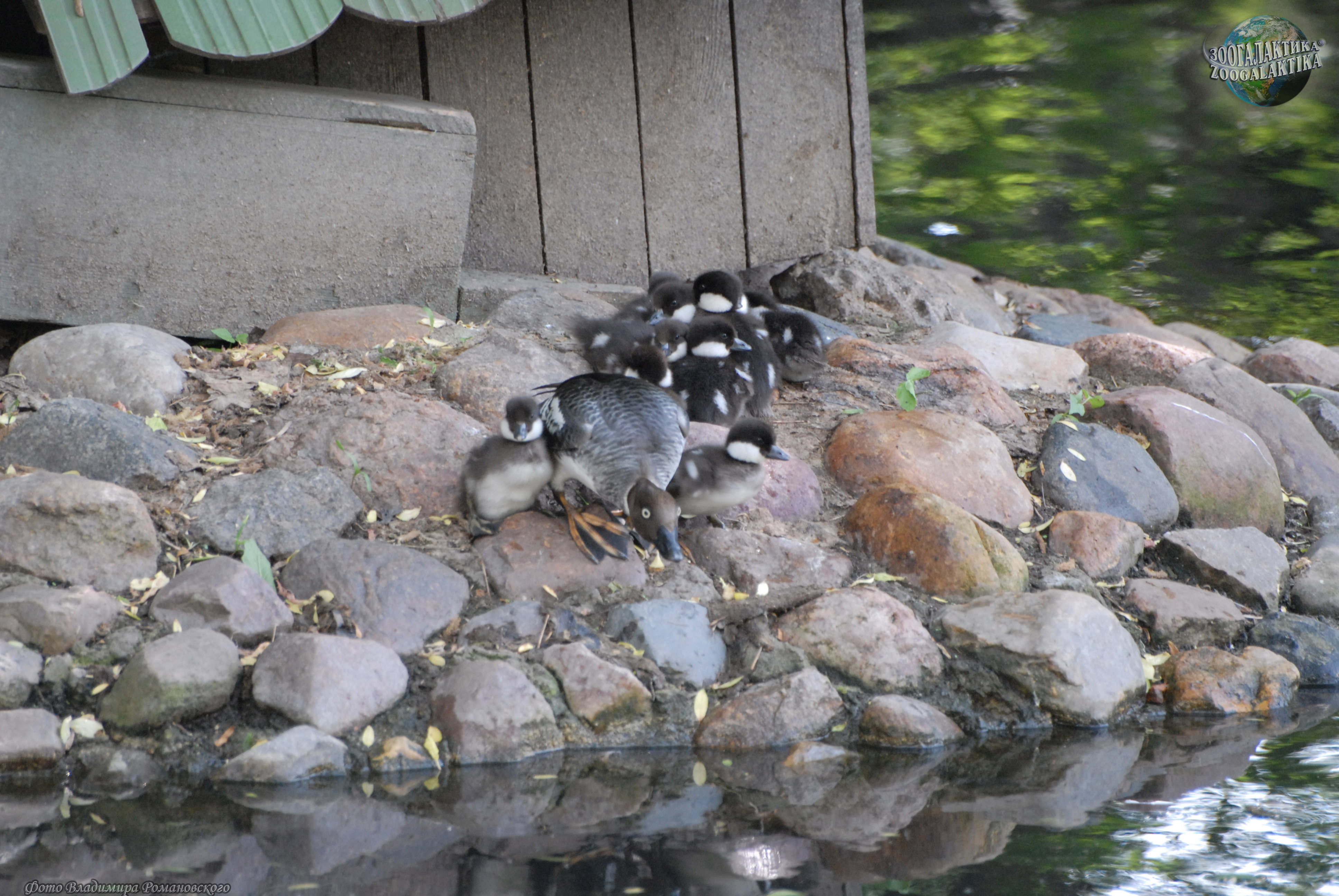 Число яиц в кладке гоголя варьирует от 4 до 14, но иногда можно найти и до 20 штук в одном дупле – это случается, когда туда откладывают яйца сразу две самки. Яйца у гоголя крупные, зеленоватого цвета, самка насиживает их в течение 30 дней. Вылупление птенцов происходит достаточно быстро, в течение 2-3 часов. Едва появившись на свет и обсохнув в течение нескольких часов, крошечные гоголята смело выпрыгивают из дупла на зов матери. Они такие маленькие и легкие, что благополучно приземляются на землю или в воду даже с большой высоты. Мать тут же ведет их к водоему, где они будут держаться по крайней мере несколько дней. Совсем маленькие птенцы еще не умеют нырять и собирают насекомых с поверхности воды. Но уже через несколько дней они прекрасно ныряют и могут оставаться под водой 1,5-2 минуты. Растут гоголята медленно, только в месячном возрасте их пуховой наряд заменяется на перья, а к полету они становятся способны на 48 день.