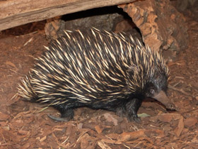 Ехидны (Tachyglossidae) покрыты грубой шерстью и иголками. Максимальная длина их тела составляет приблизительно 30 см. Их губы имеют клювоподобную форму. Конечности ехидны короткие и довольно сильные, с большими когтями, благодаря чему они могут хорошо копать. У ехидны нет зубов и очень маленький рот. Основу их рациона составляют термиты и муравьи, которых ехидны ловят своим длинным клейким языком, а также другие некрупные беспозвоночные, которых ехидны раздавливают во рту, прижимая языком к нёбу.